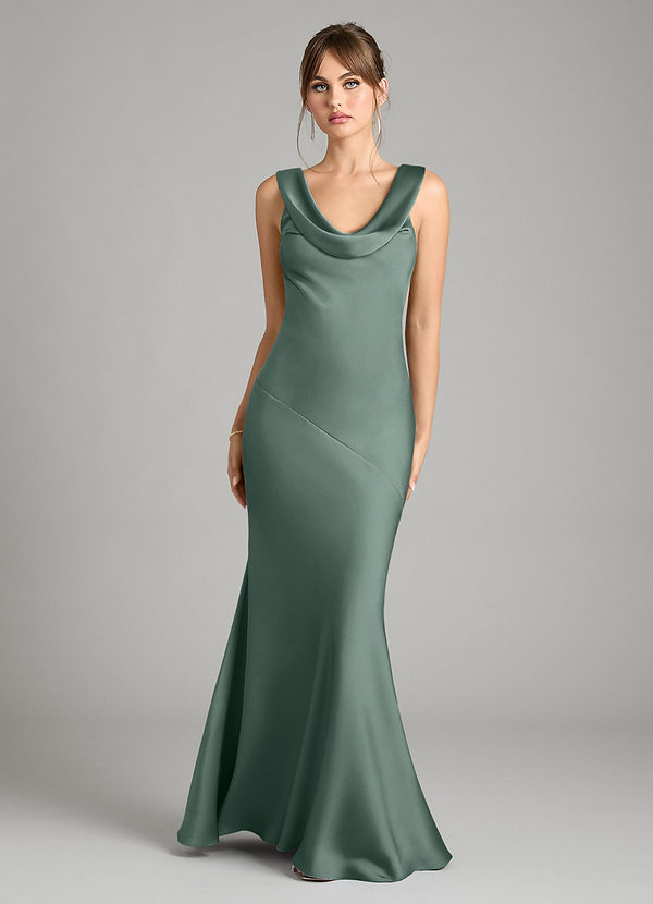 Sea Moss A-Line Pleated Stretch Satin Dress