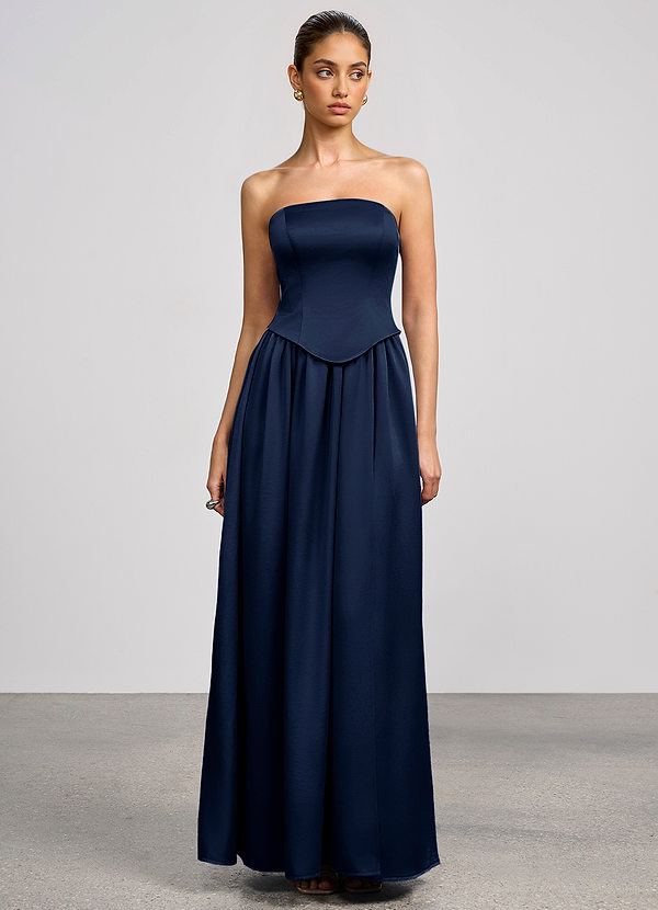 Romilly Navy Luminous Satin Maxi Dress