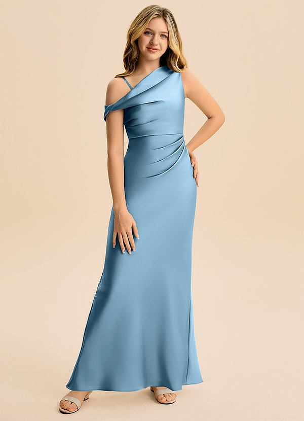 Dusty Blue A-Line One Shoulder Chiffon Dress