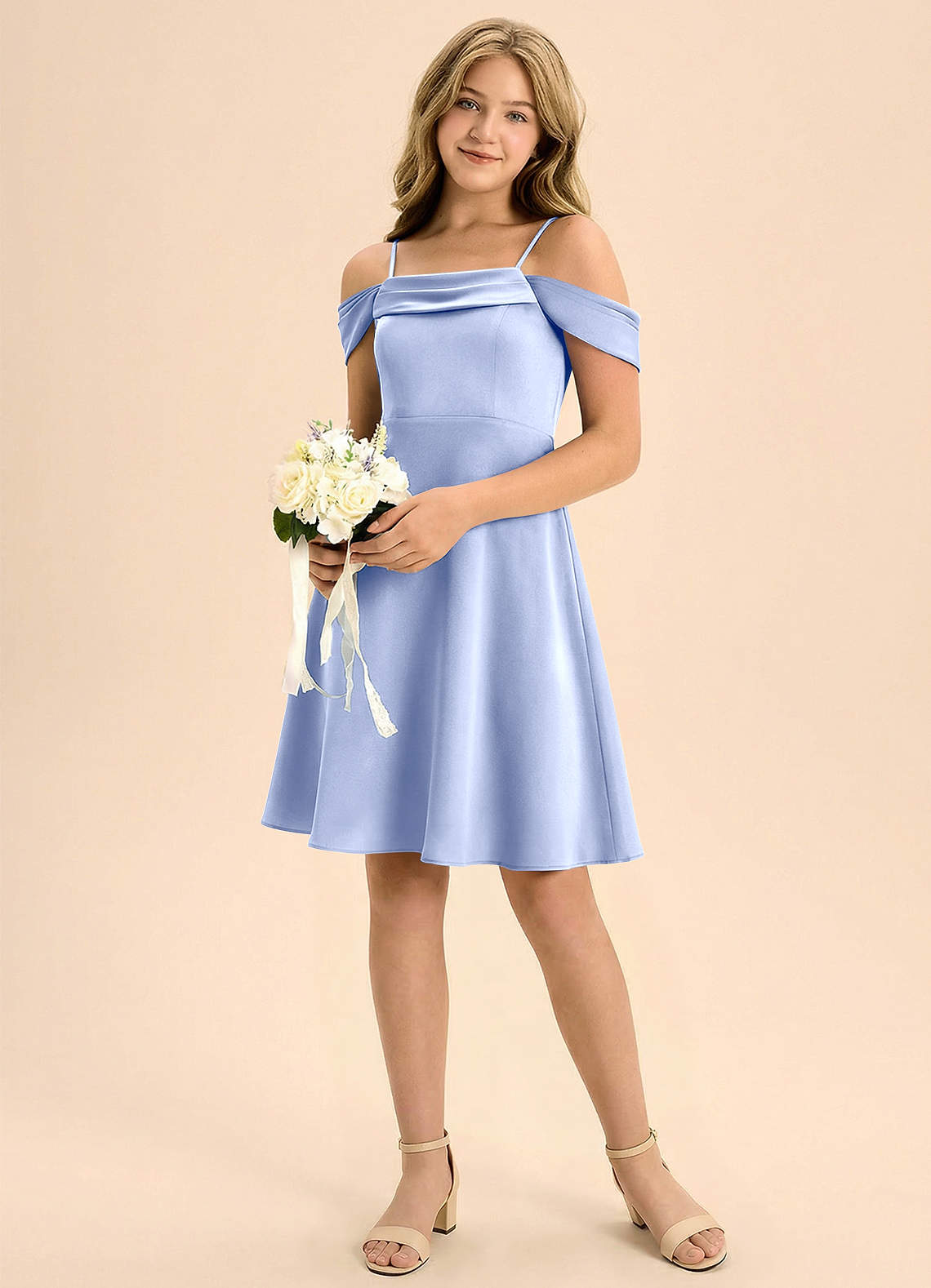A-Line Plisseret Stræk satin Mini Junior brudepige Kjole