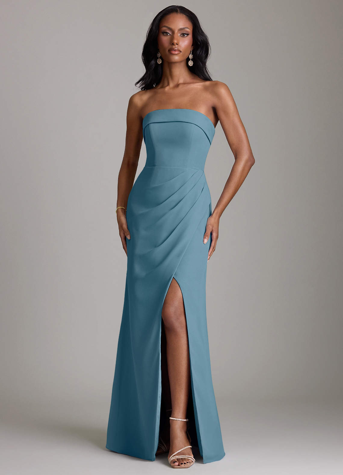 En streg Stropløs Chiffon Gulv-længde Kjole