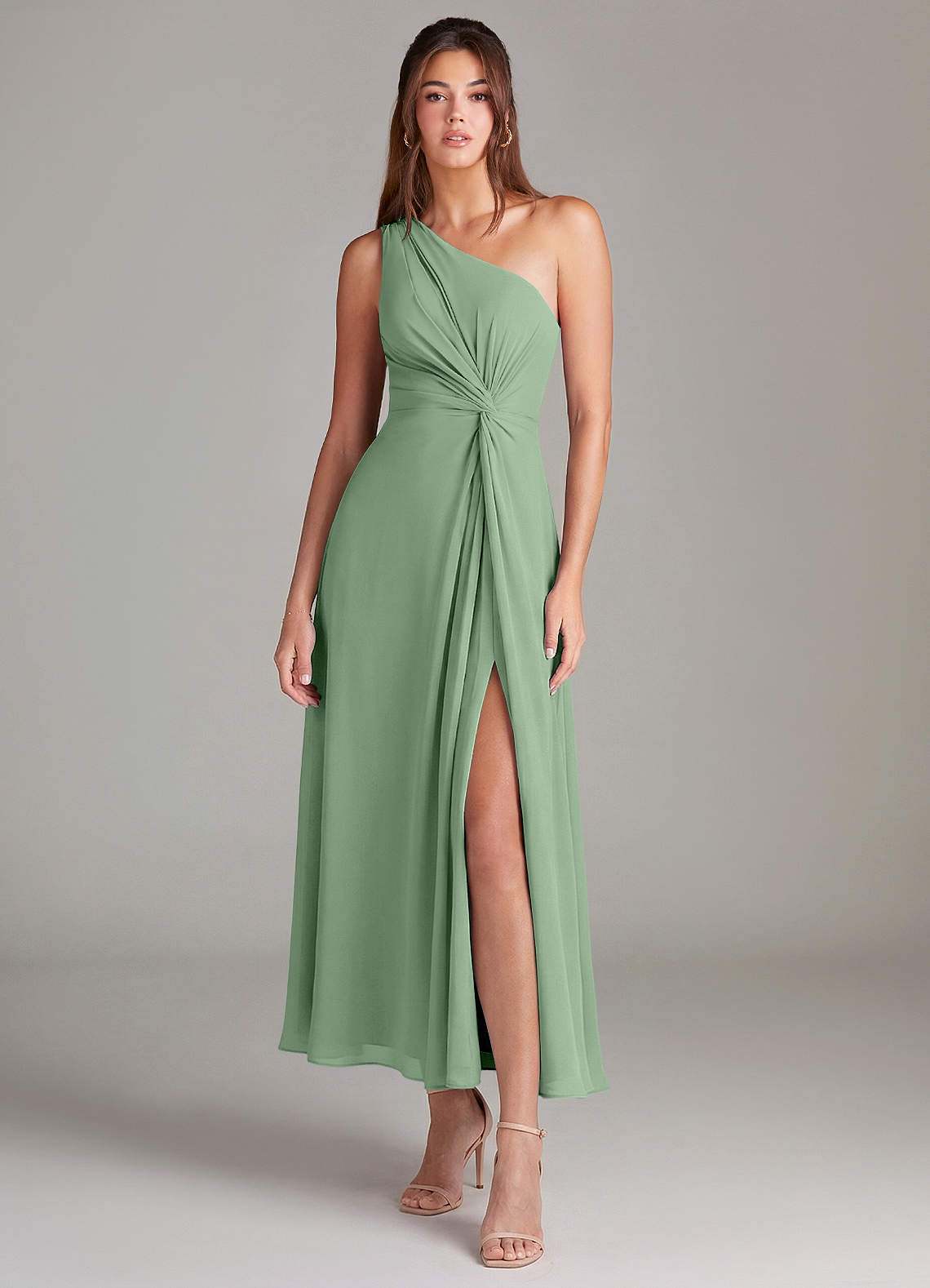 Azazie Brooke Brudepigekjoler En streg En skulder Chiffon Ankel-længde Kjole image1
