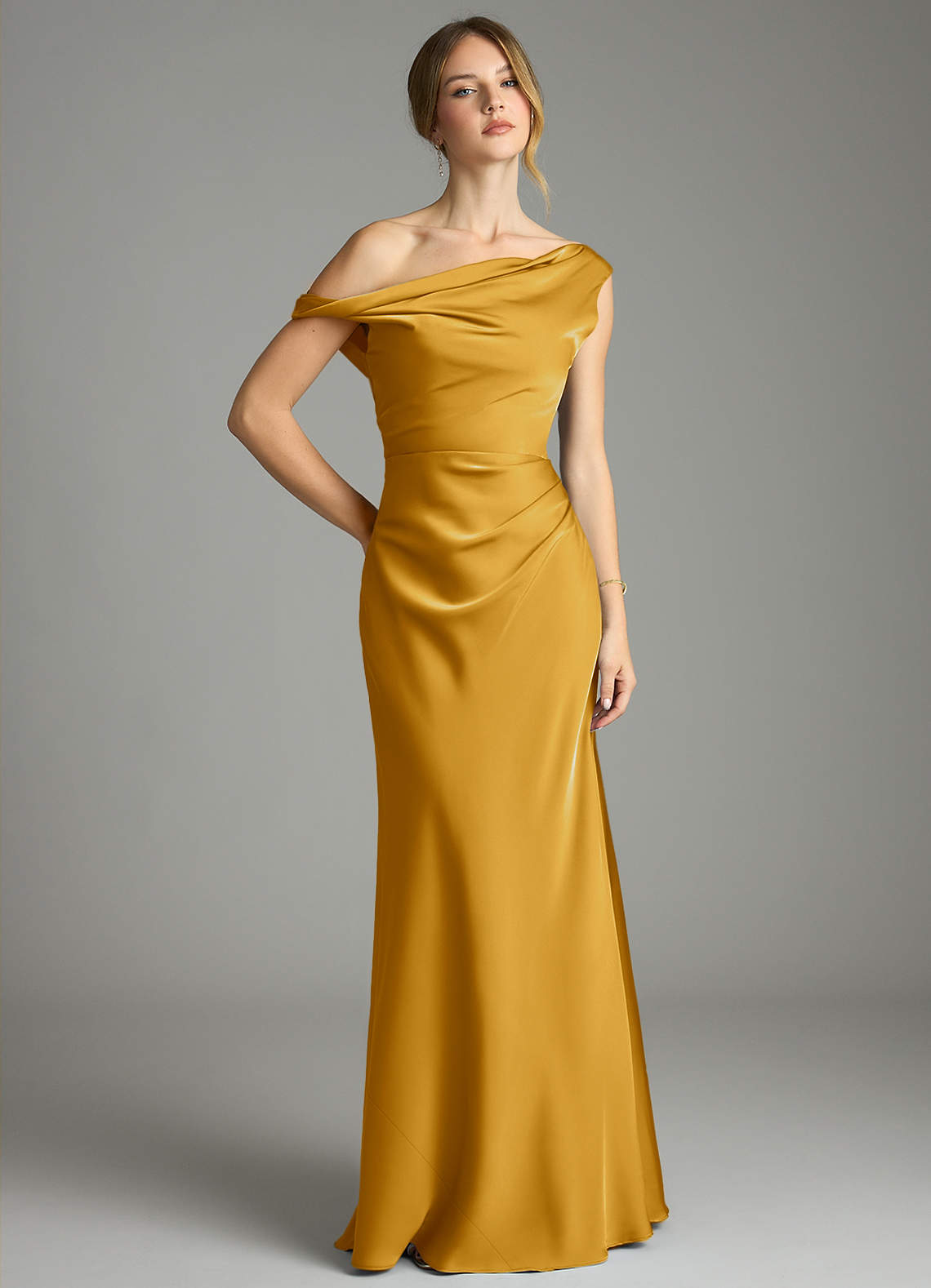 Havfrue Off-Shoulder Stræk satin Gulv-længde Kjole