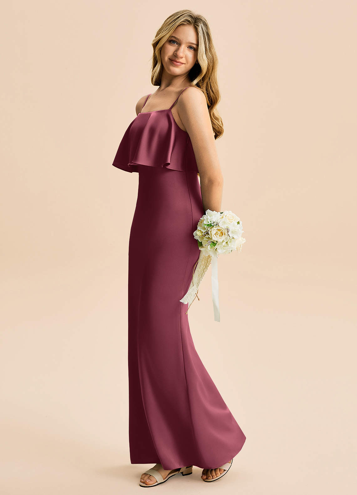 Havfrue Stræk satin Gulv-længde Junior brudepige Kjole