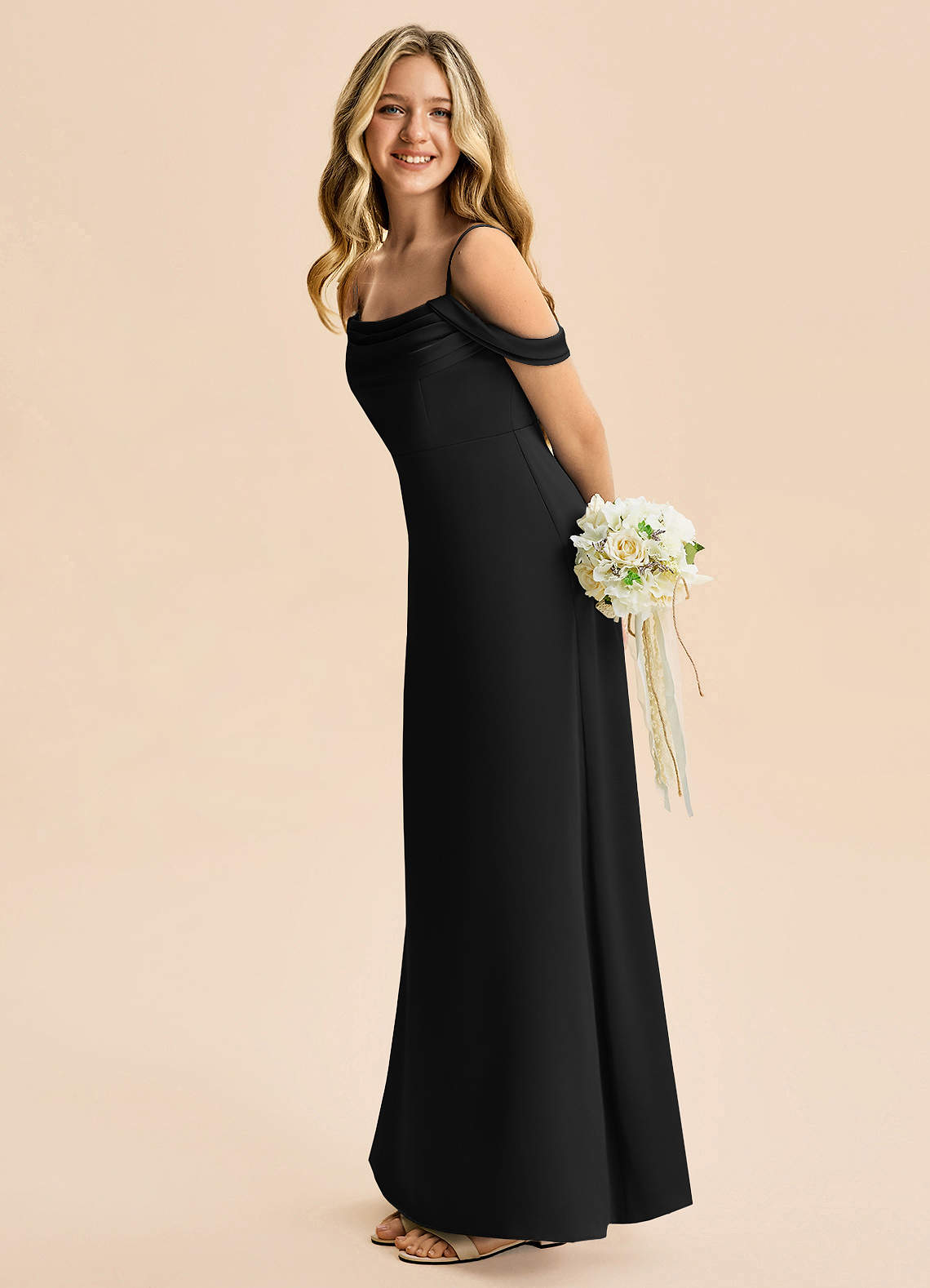A-Line Off-Shoulder Stræk satin Gulv-længde Junior brudepige Kjole