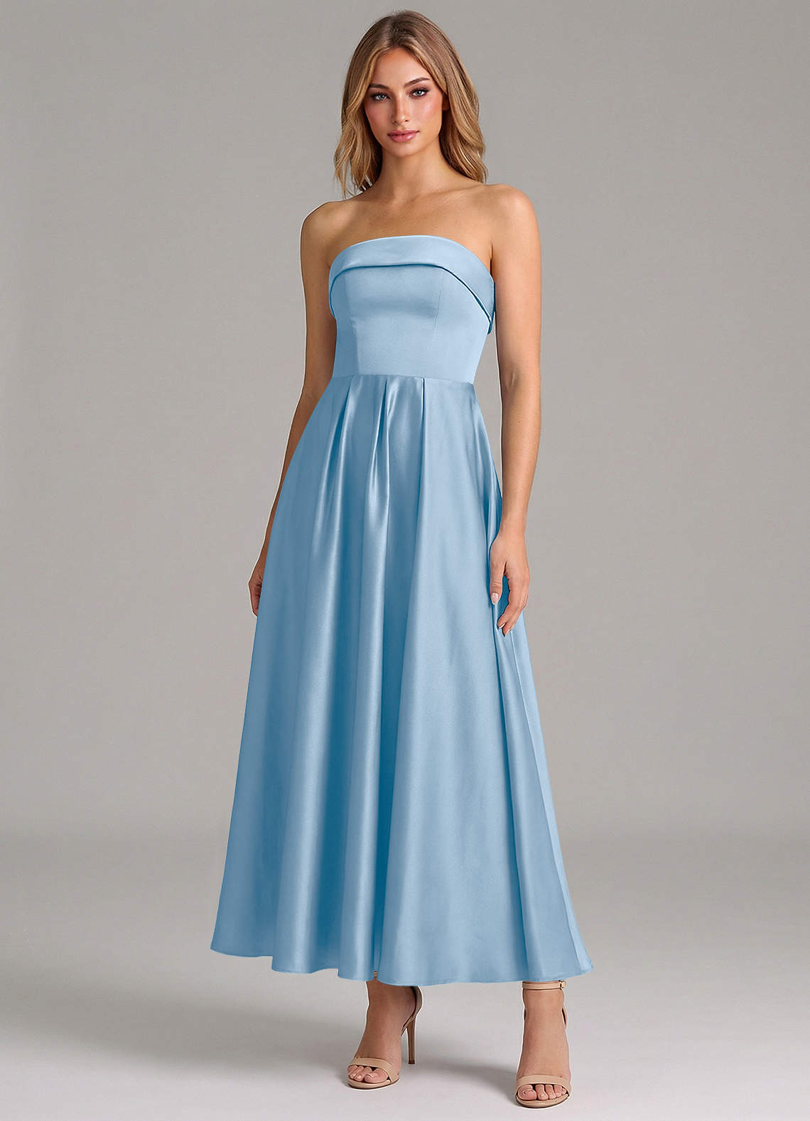 En streg Plisseret Stræk satin Ankel-længde Kjole