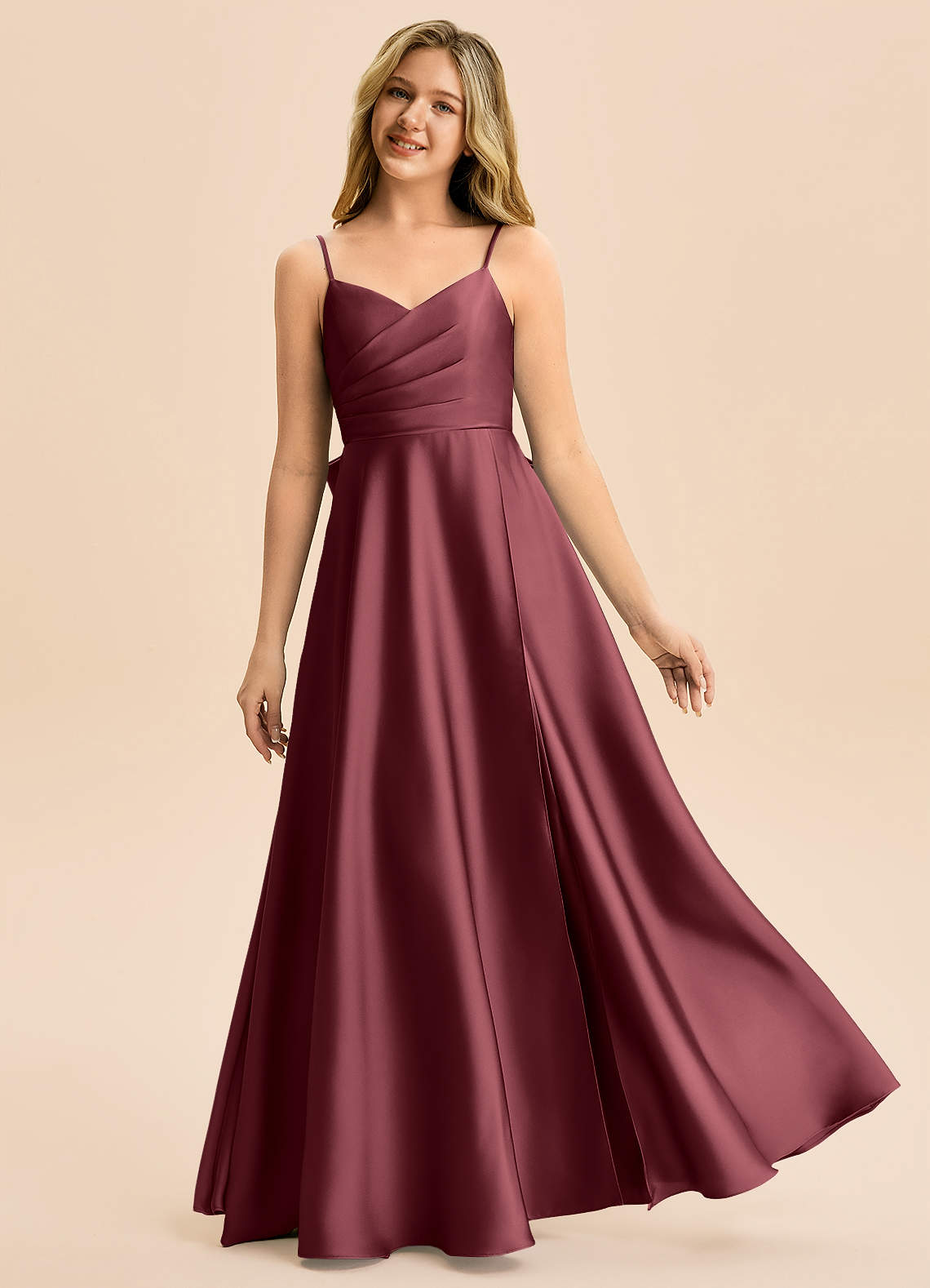 A-Line Plisseret Stræk satin Gulv-længde Junior brudepige Kjole