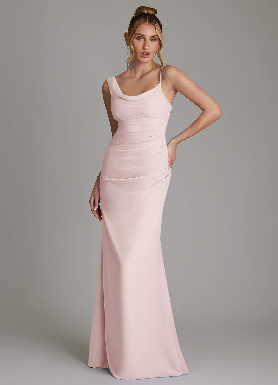 A-Linie Plissee Chiffon Kleid Zartrosa