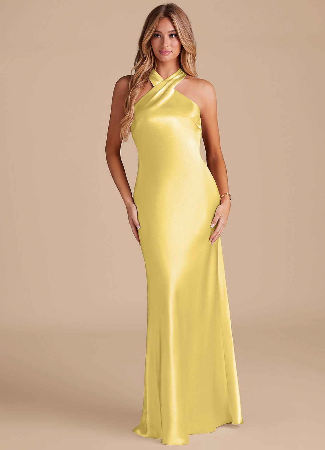Meerjungfrau-Linie Schleifen Metallischer Satin Kleid Kanarienvogel