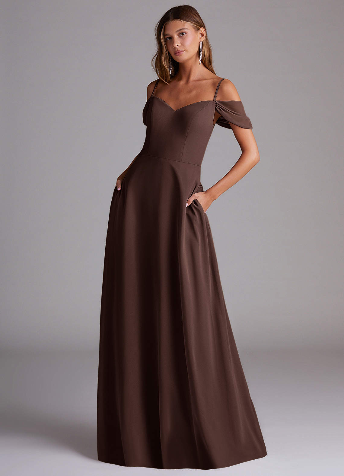 Wandelbar A-Linie Schulterfrei Chiffon Kleid Ganache