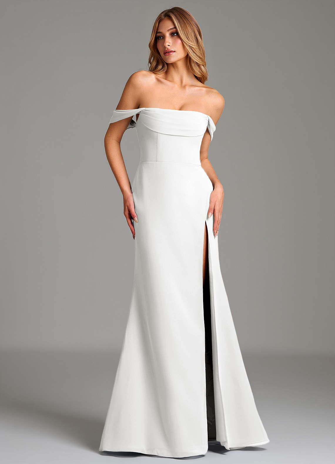 Wandelbar Etui Schulterfrei Chiffon Kleid Weiß