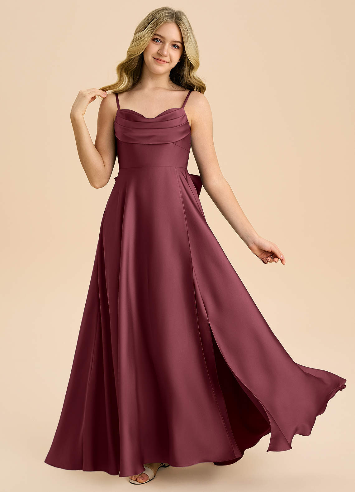 Vestido de Merlot de Satén Elástico de Corte en A con Escote de Corazón