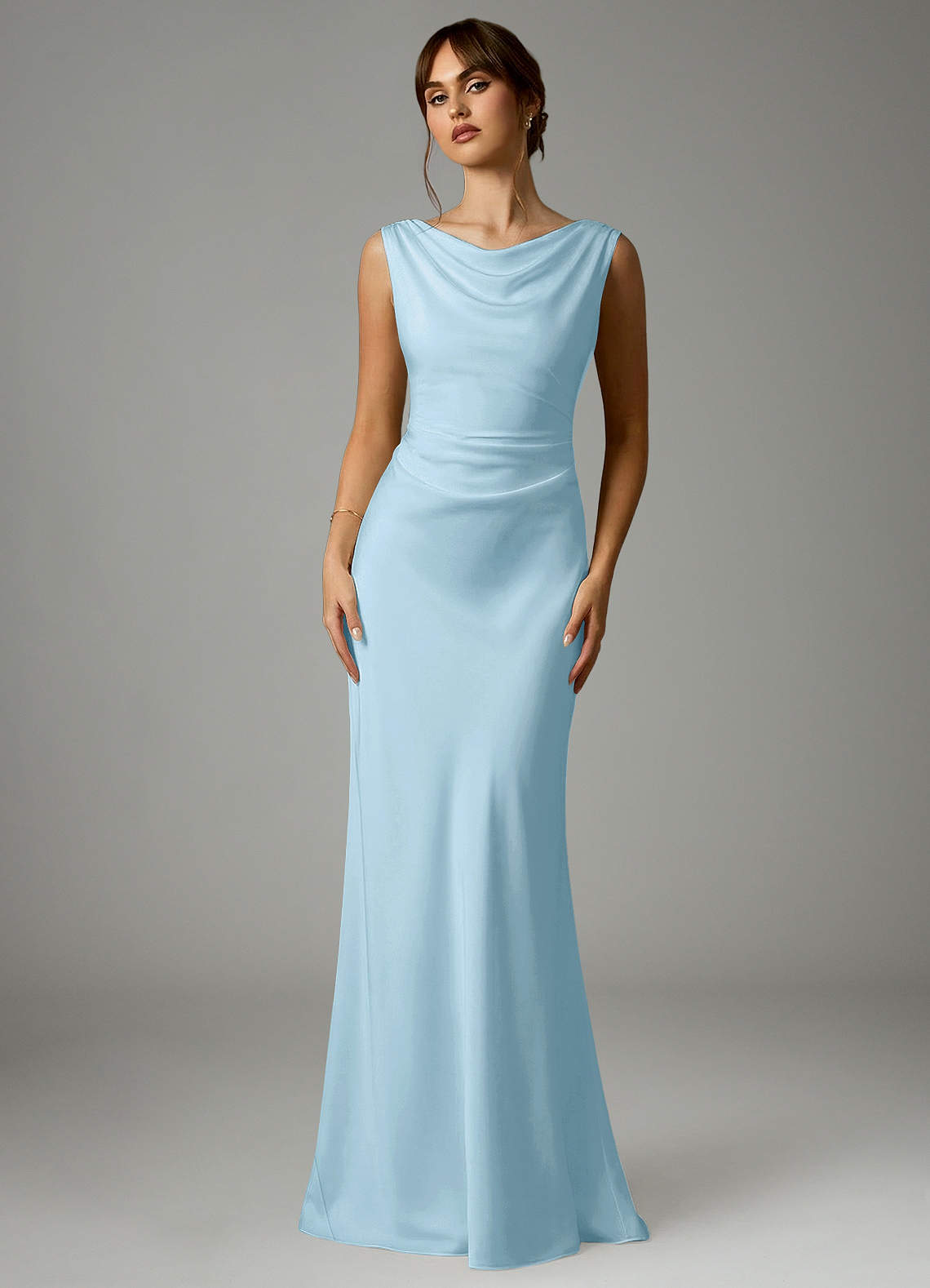 Vestido de Azul Cielo de Satén Elástico de Corte Sirena con Plisado