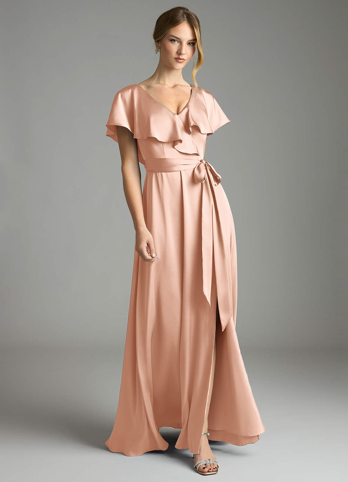 Vestido de Oro Rosa de Satén Elástico de Corte en A con Con bolsillos
