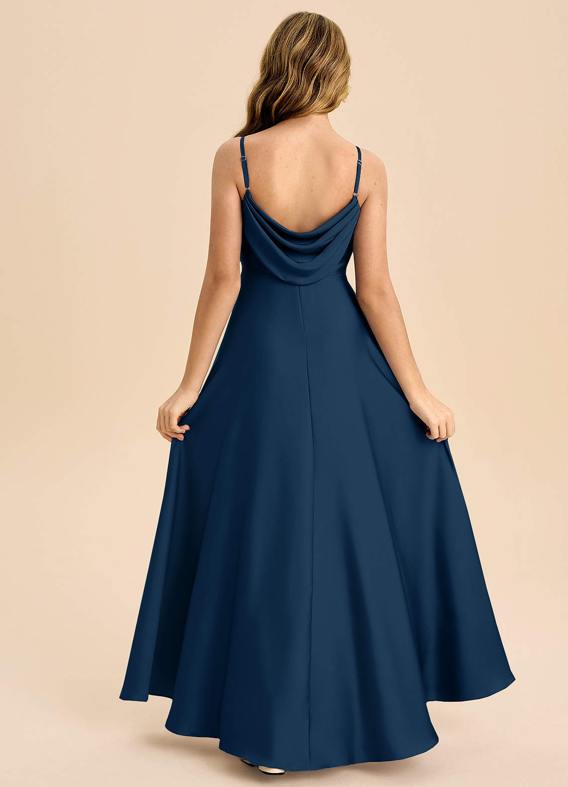 Vestido de Azul Marino Oscuro de Satén Elástico de Corte en A con Plisado