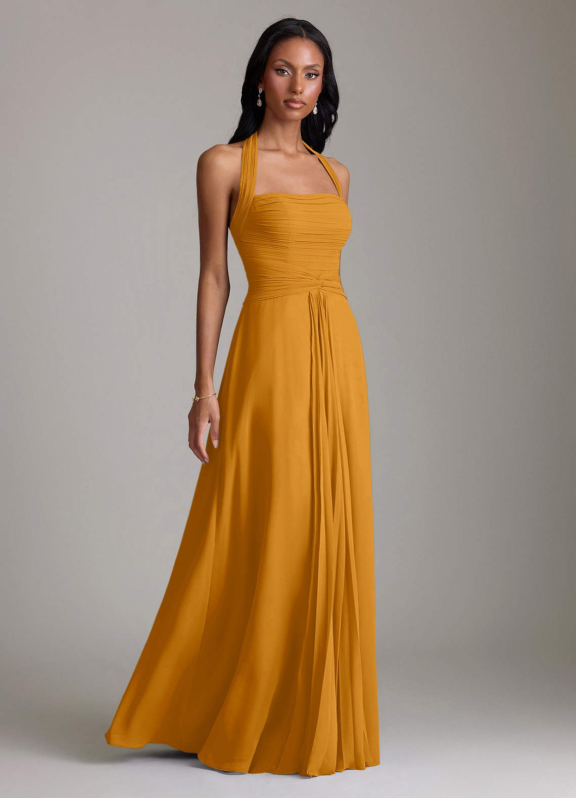 Vestido de Caramelo de Gasa de Corte en A con Plisado