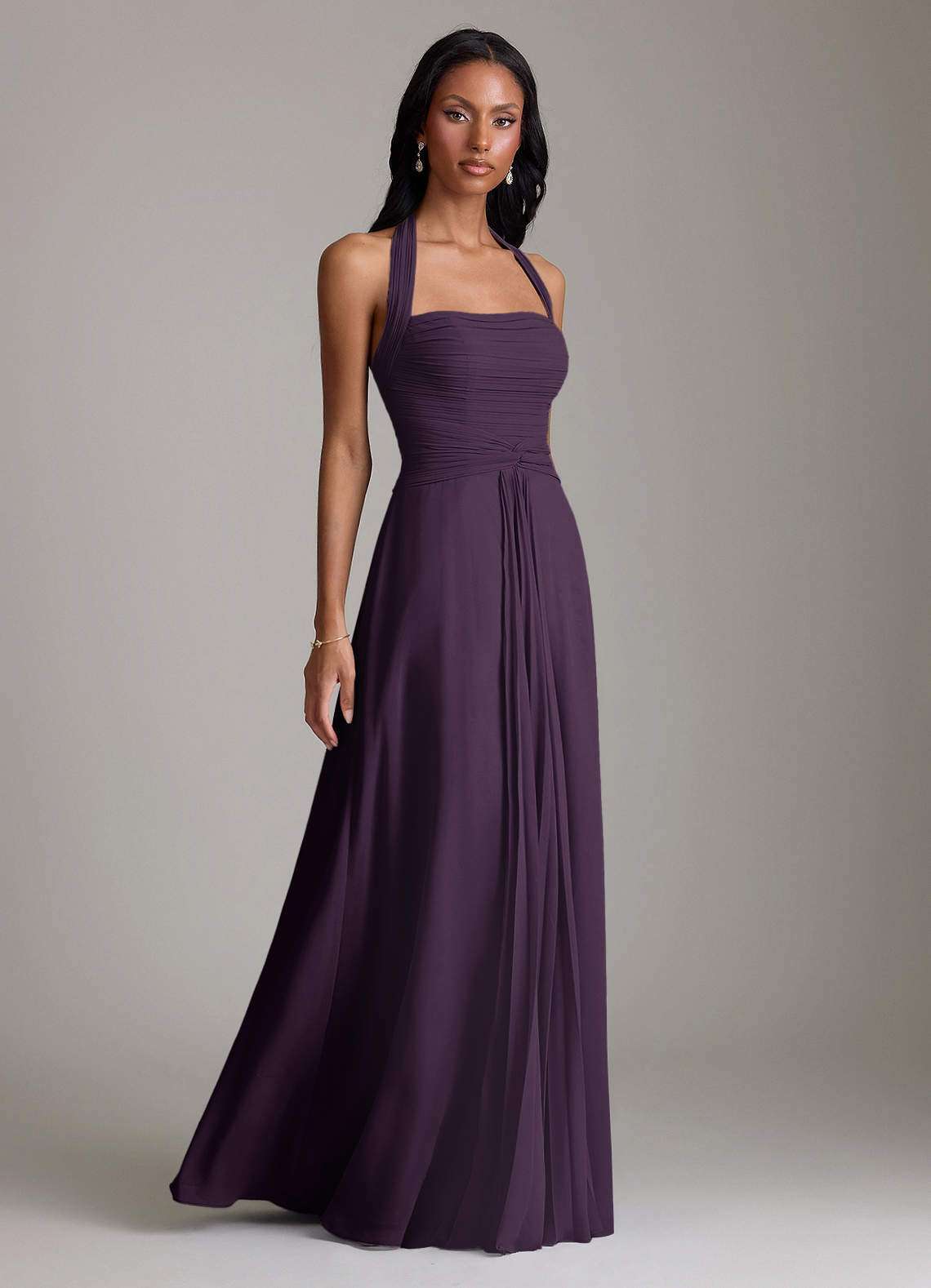 Vestido de Ciruela de Gasa de Corte en A con Plisado