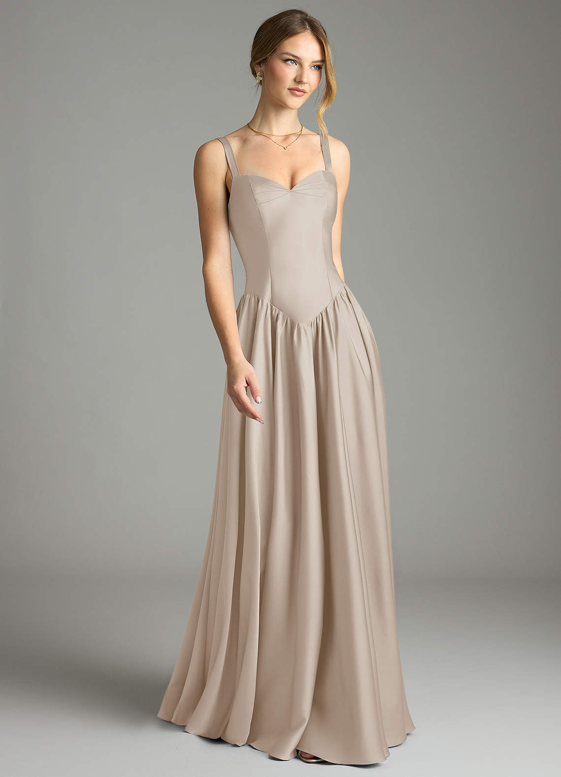 Vestido de Escarcha de Satén Elástico de Corte en A con Corsé