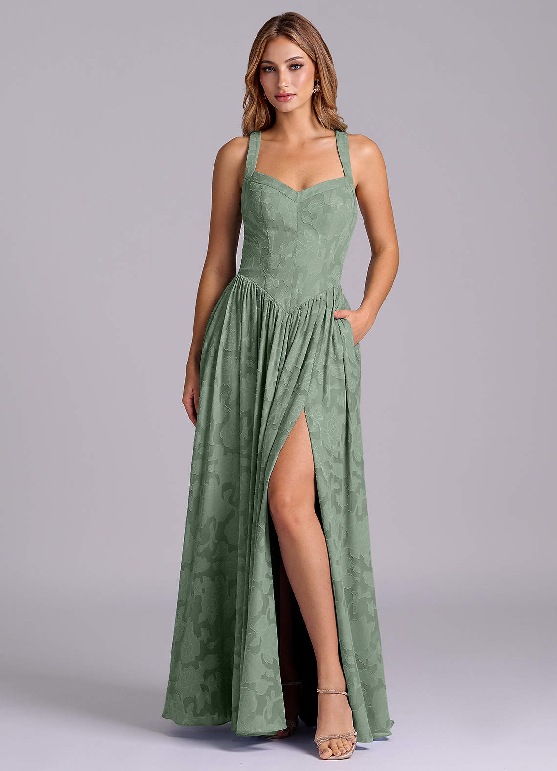 Vestido de Matcha de Devorado Floral de Corte en A con Corsé