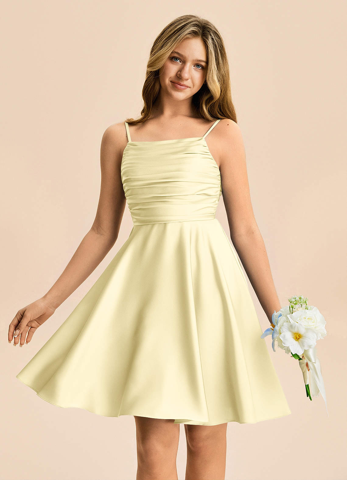 Vestido de Sorbete De Limón de Satén Elástico de Corte en A con Plisado