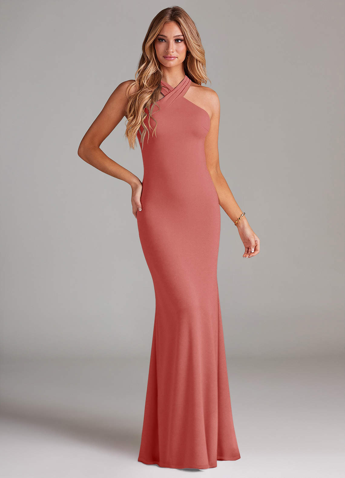 Robe Sirène en Mousseline de soie Plissée Antique Rose