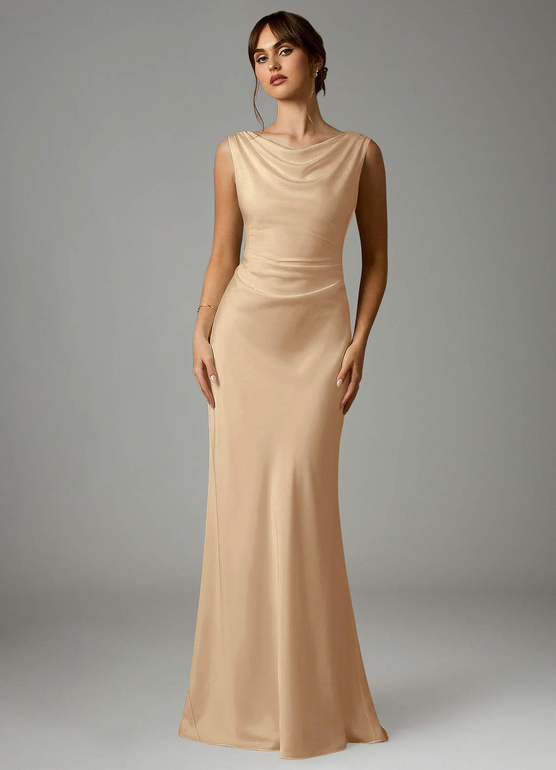 Robe Sirène en Satin extensible Plissée Champagne