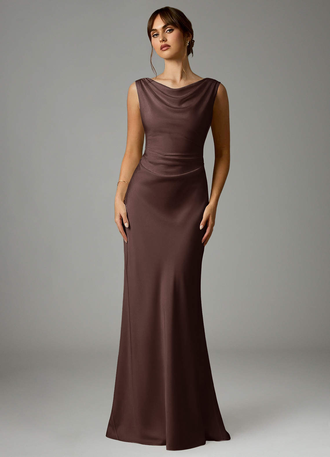 Robe Sirène en Satin extensible Plissée Ganache