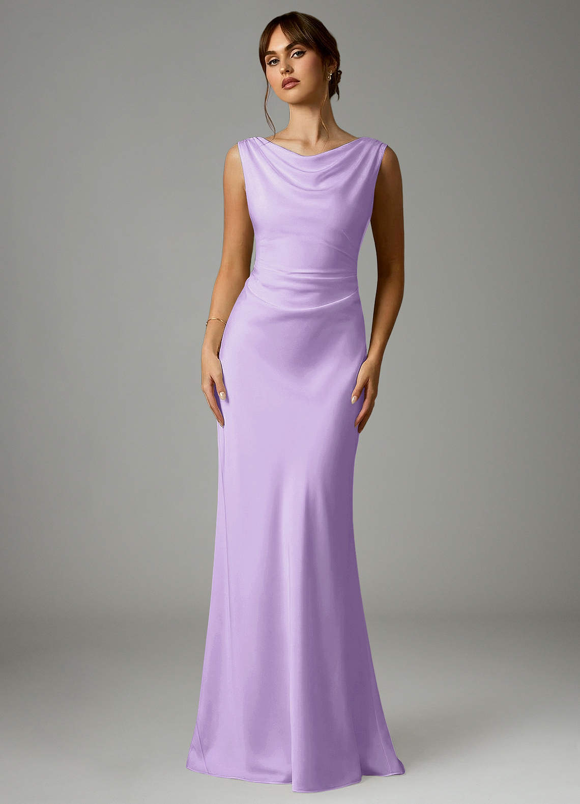 Robe Sirène en Satin extensible Plissée Lilas