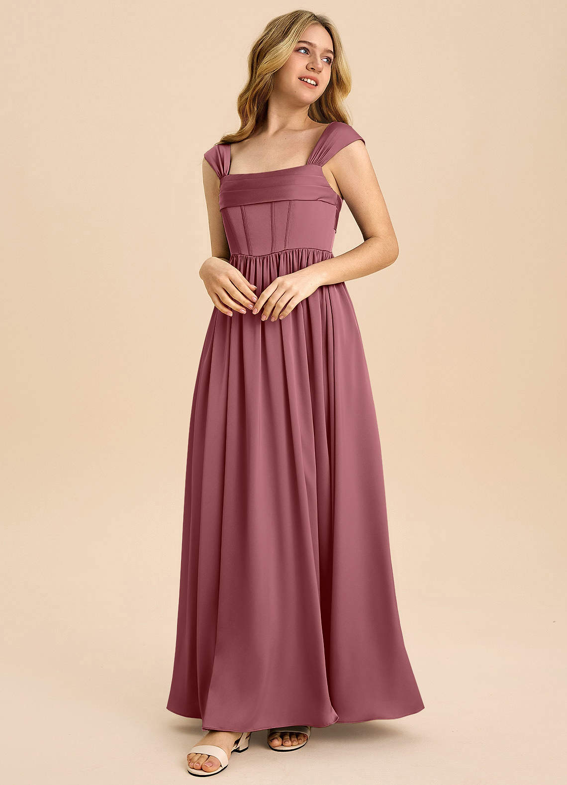 Desert Rose A-Line Pleated Stretch Satin Dress