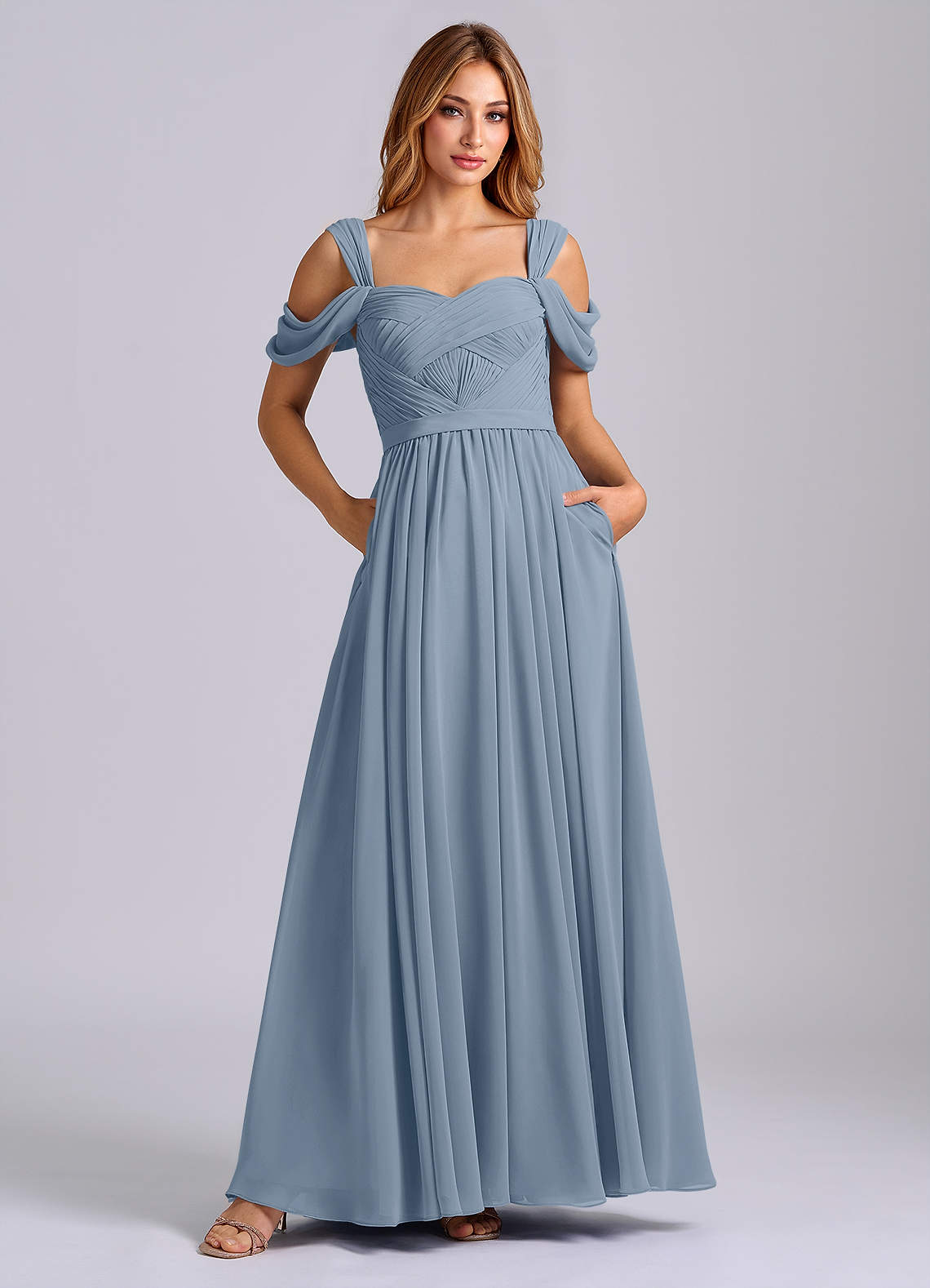 Sky Blue A-Line Off the Shoulder Chiffon Dress