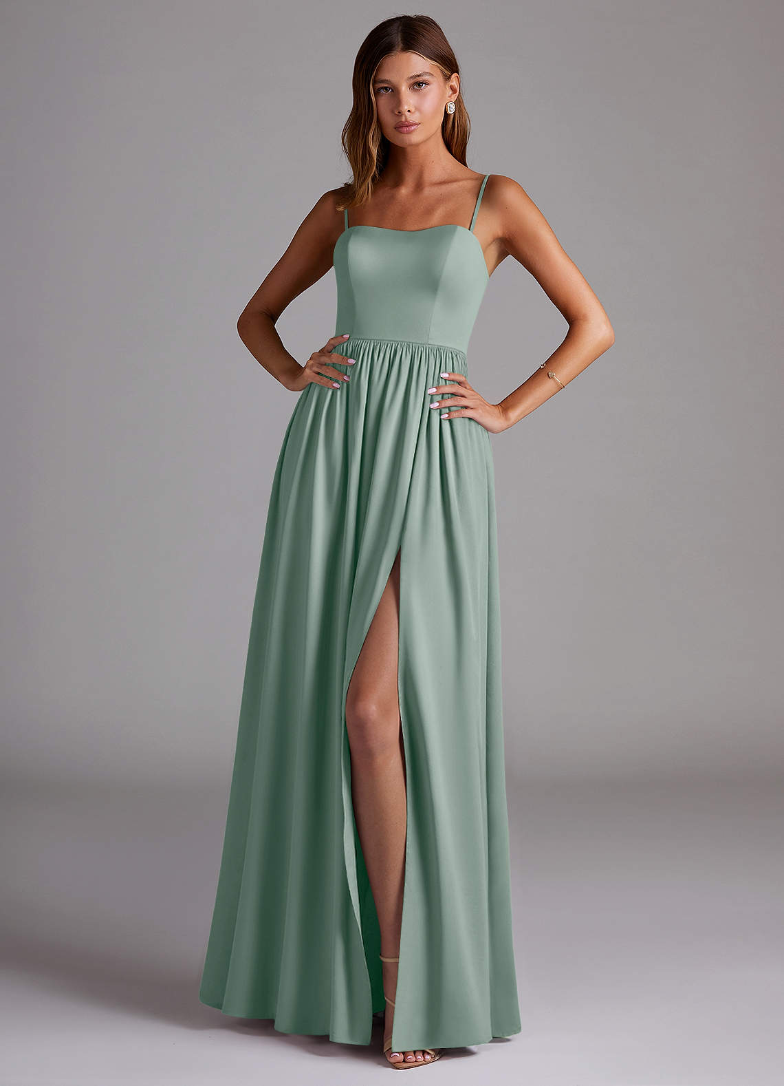 Abito Convertibile A-Line in Raso Elasticizzato a Spalla Scoperta Salvia Argentata