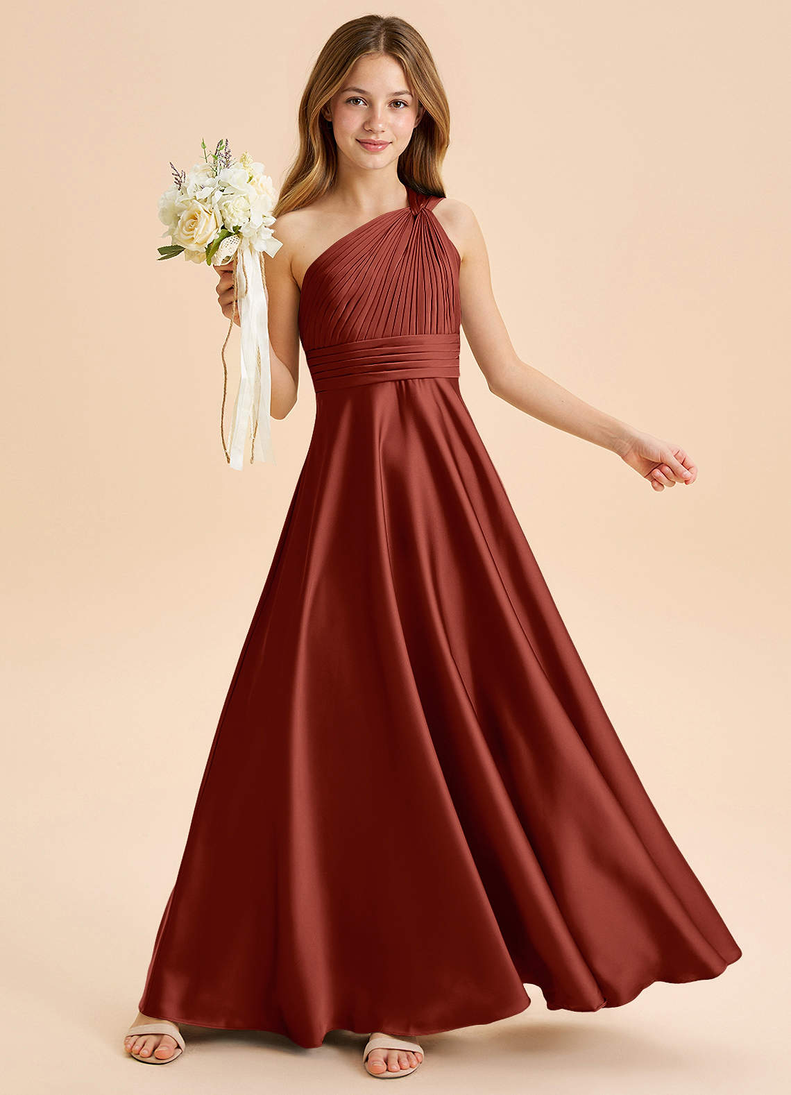 Abito A-Line in Raso Elasticizzato Plissettato Terracotta