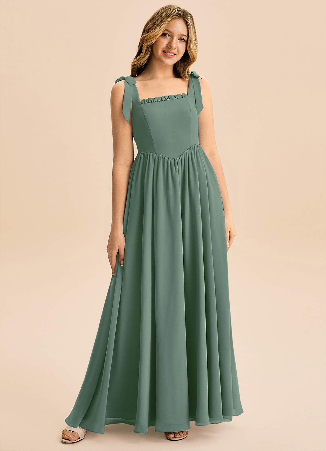 Abito A-Line in Chiffon Fiocco Eucalipto