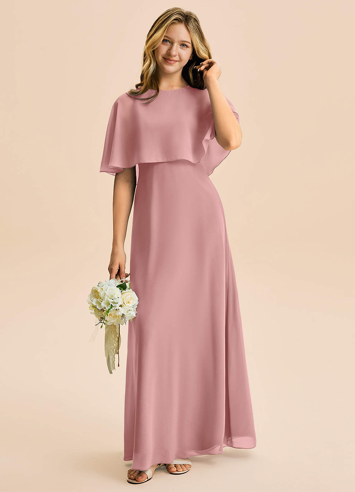 Abito A-Line in Chiffon Rosa Polverosa