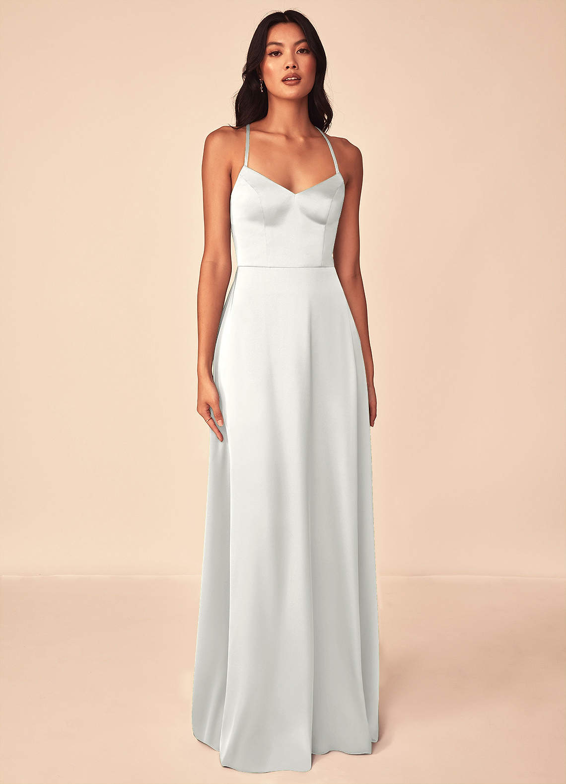 Abito A-Line in Raso Elasticizzato con Scollo a V Bianco