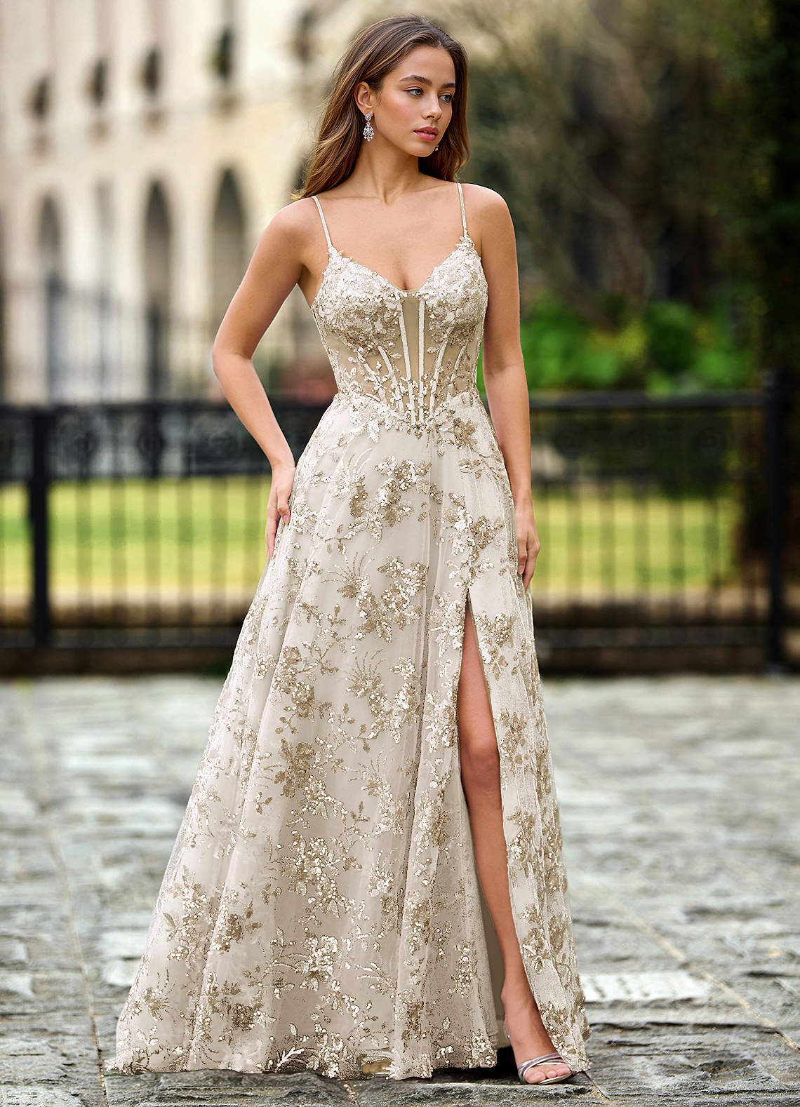 Willowener Champagne Abito da ballo in pizzo con paillettes