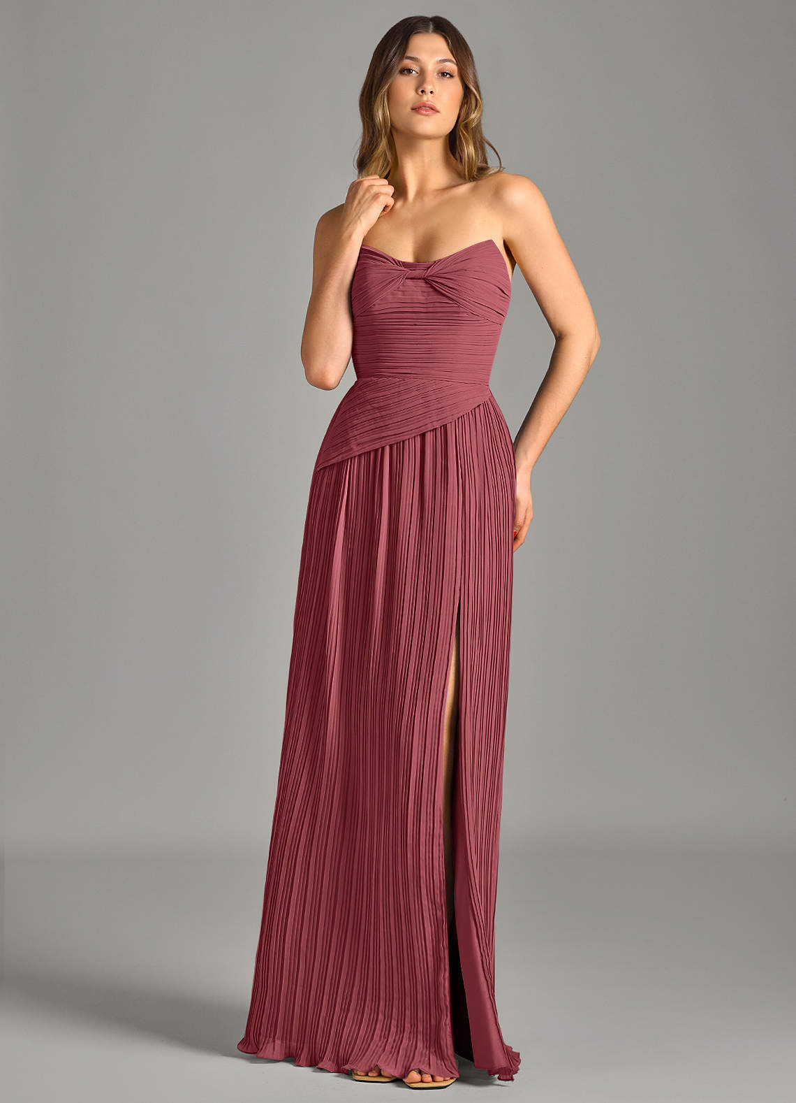 A라인 스트랩리스 쉬폰 바닥 길이 드레스