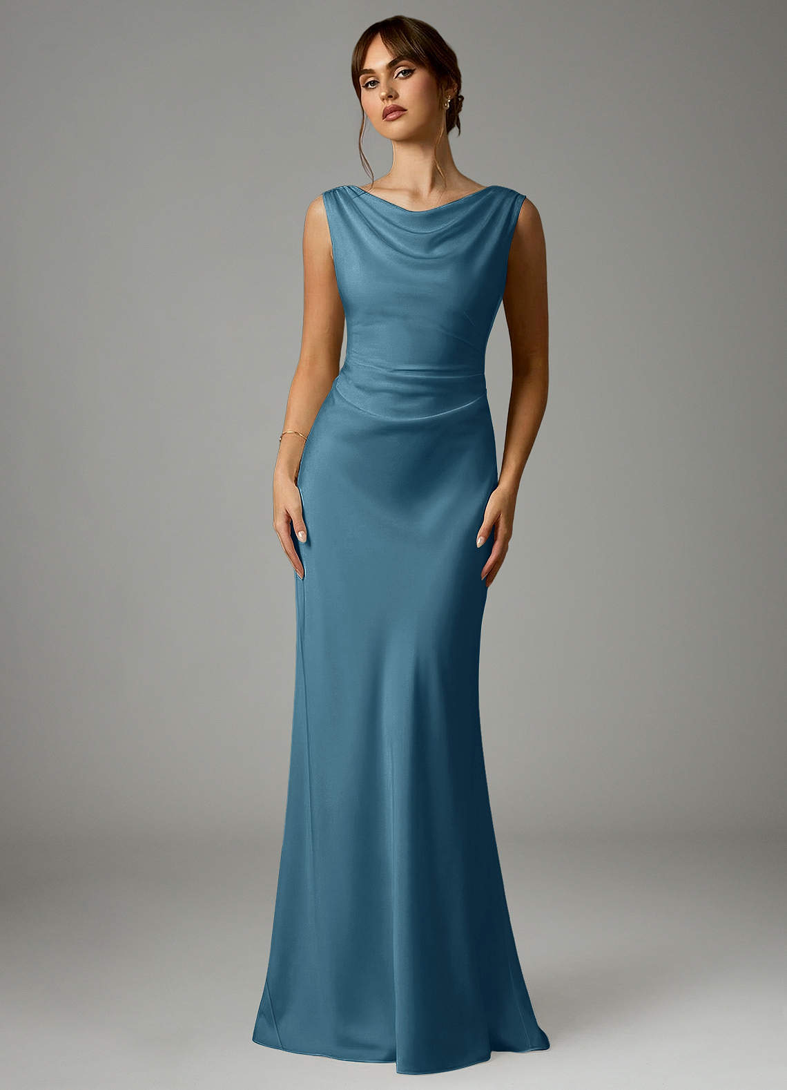 인어 주름진 스트레치 새틴 바닥 길이 드레스