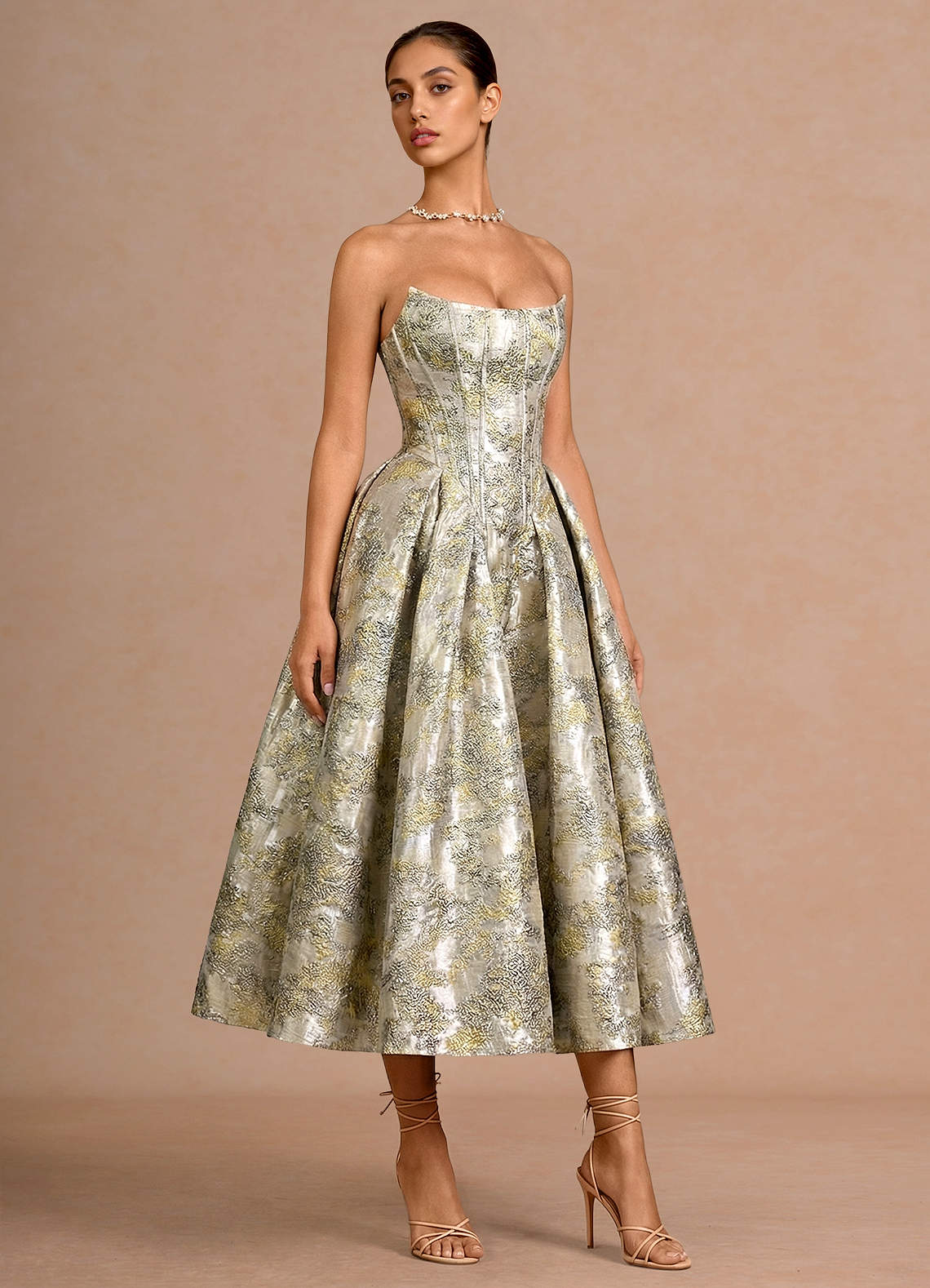 Mavis 금박 은 미디 드레스