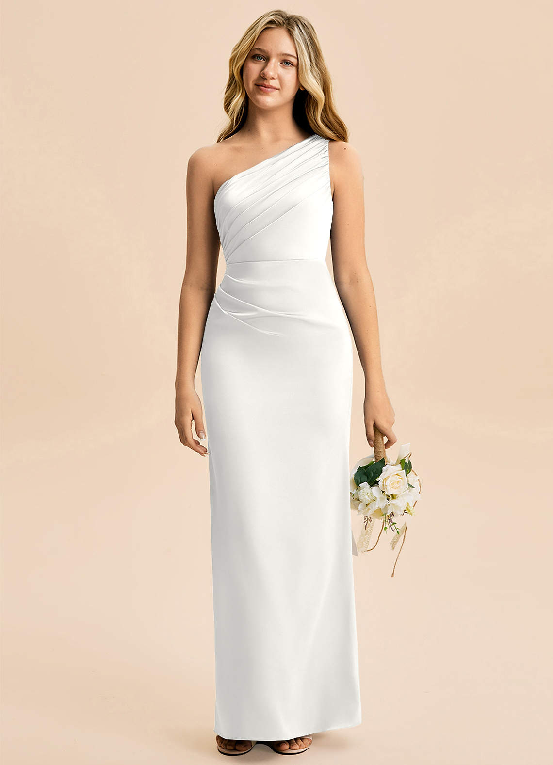 Jurk van Stretch Satijn met Kolom Geplooid Wit