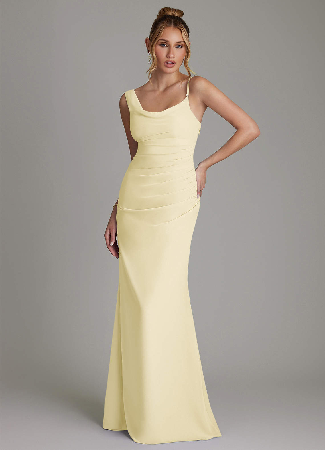 Jurk van Chiffon met A-Lijn Geplooid Citroensorbet