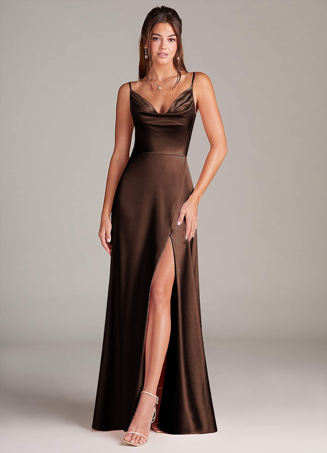 Jurk van Metaalachtig Satijn met A-Lijn met Zakken Ganache