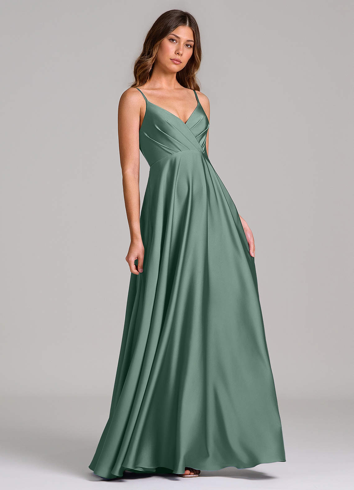 Linia A Pofałdowany Satyna elastyczna Do ziemi Sukienka