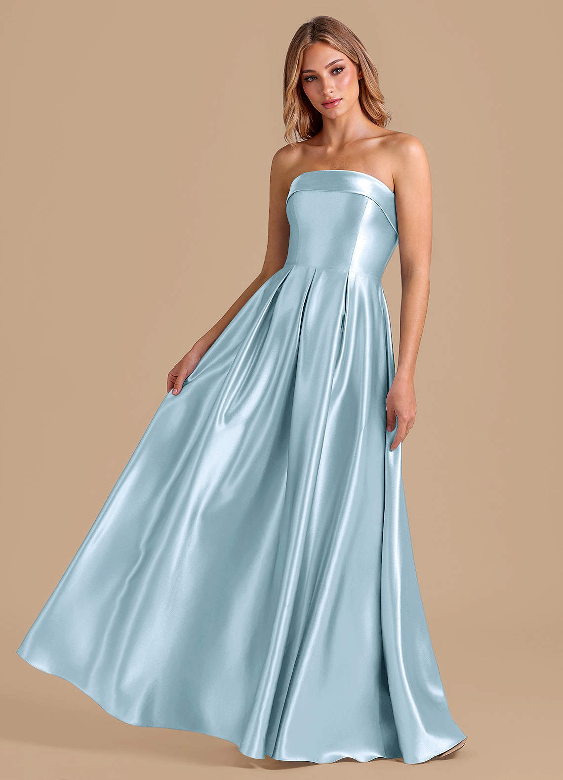 Linia A Pofałdowany Metaliczny satynowy Do ziemi Sukienka
