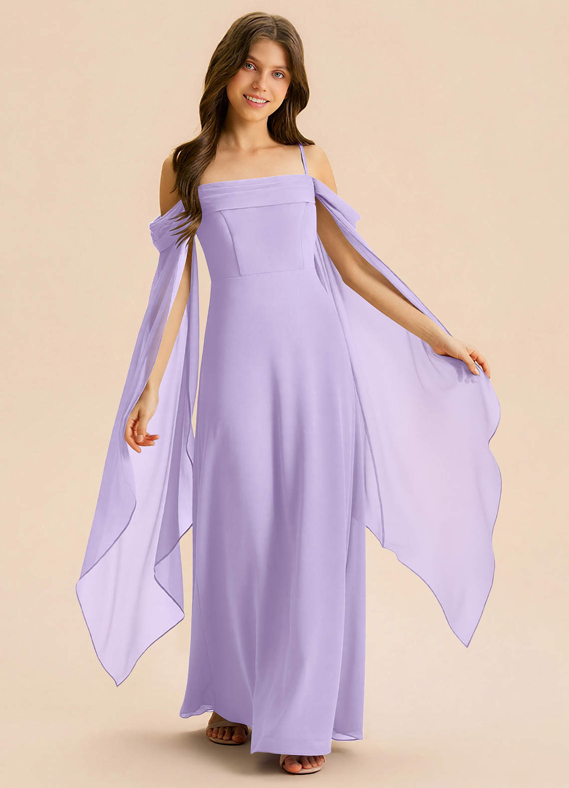 Linia A Pofałdowany Szyfon Długość podłogi Młodsza druhna Sukienka