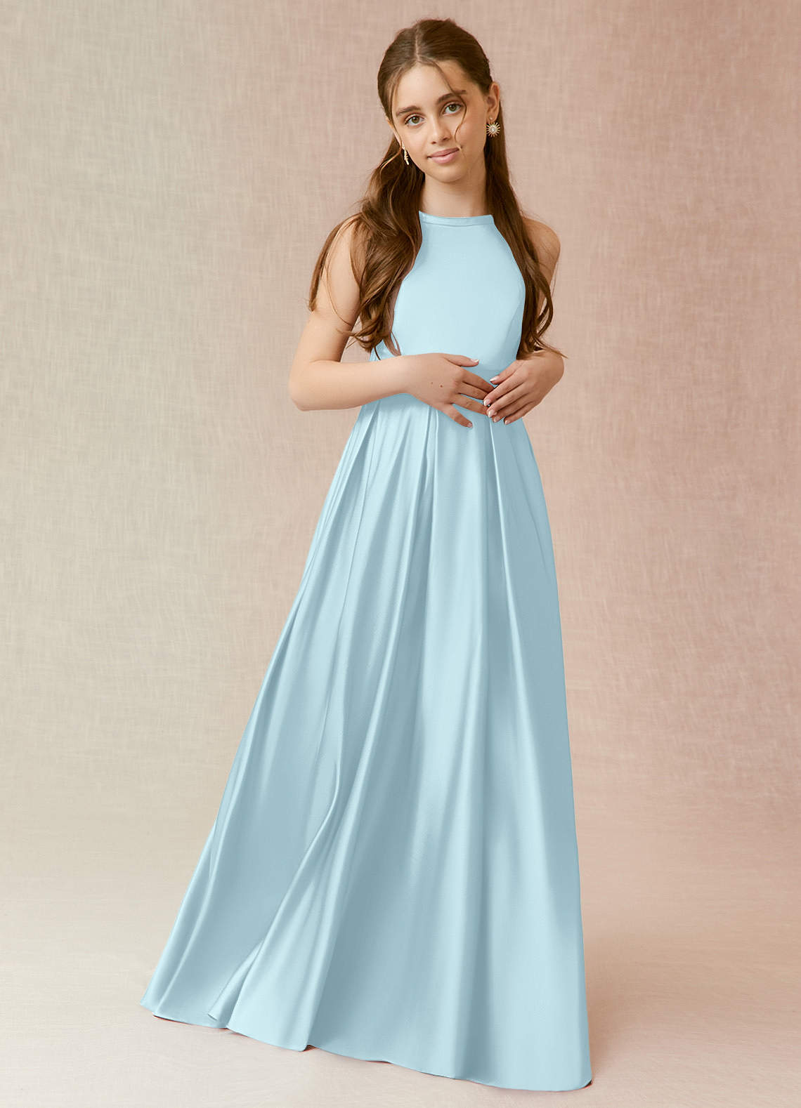 Cloud Blue A-Line with Pockets Stretch Satin Dress