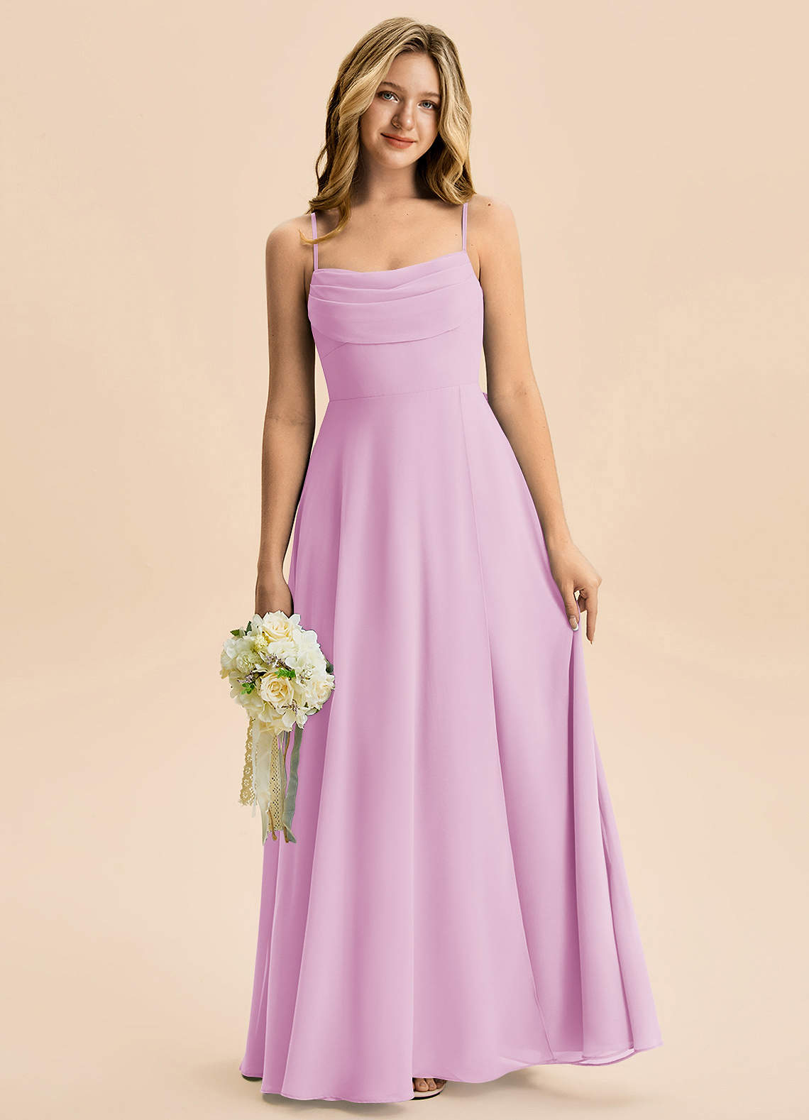 Candy Pink A-Line Pleated Chiffon Dress
