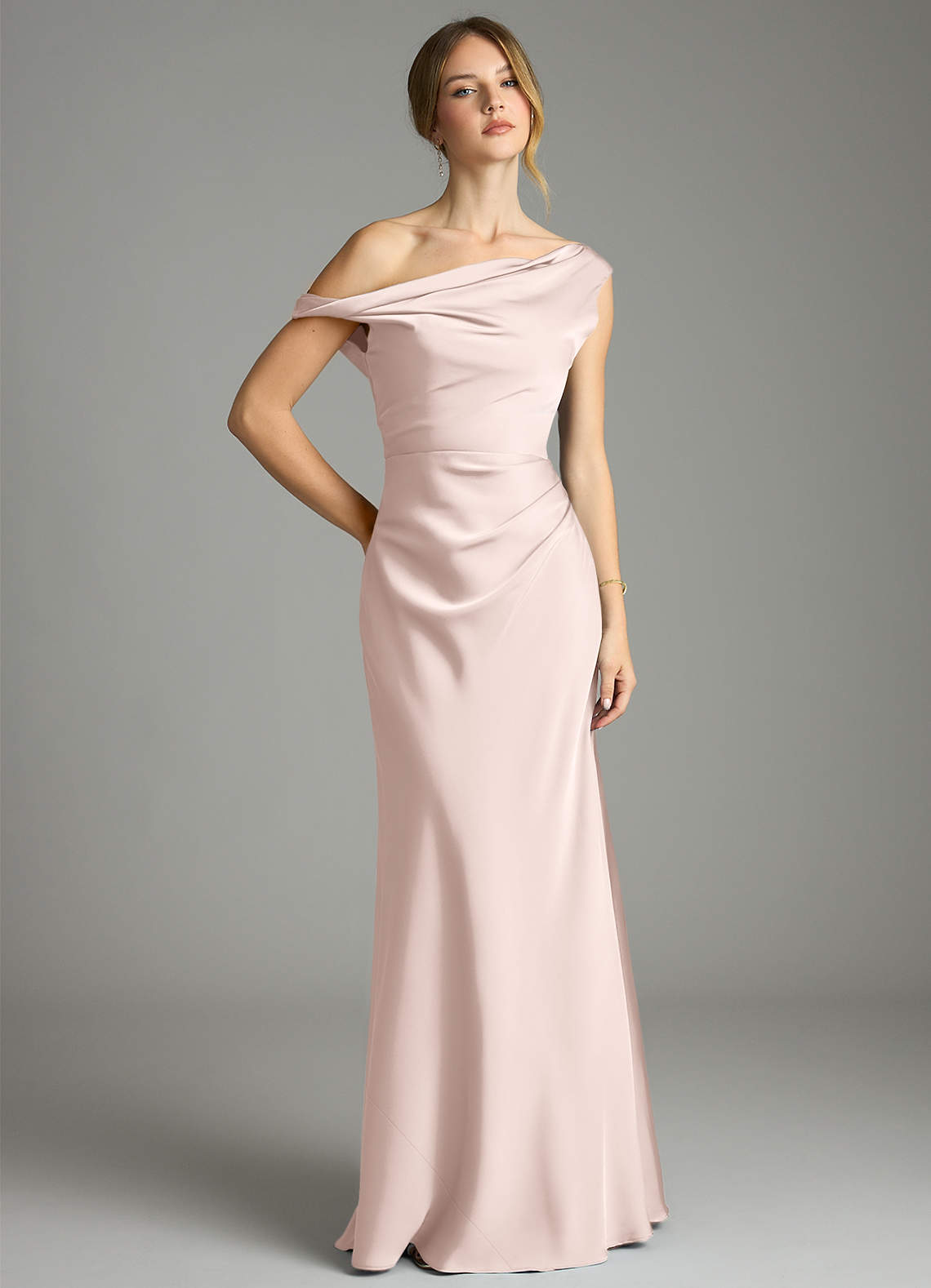 Blushing Pink Mermaid Off the Shoulder Stretch Satin Dress