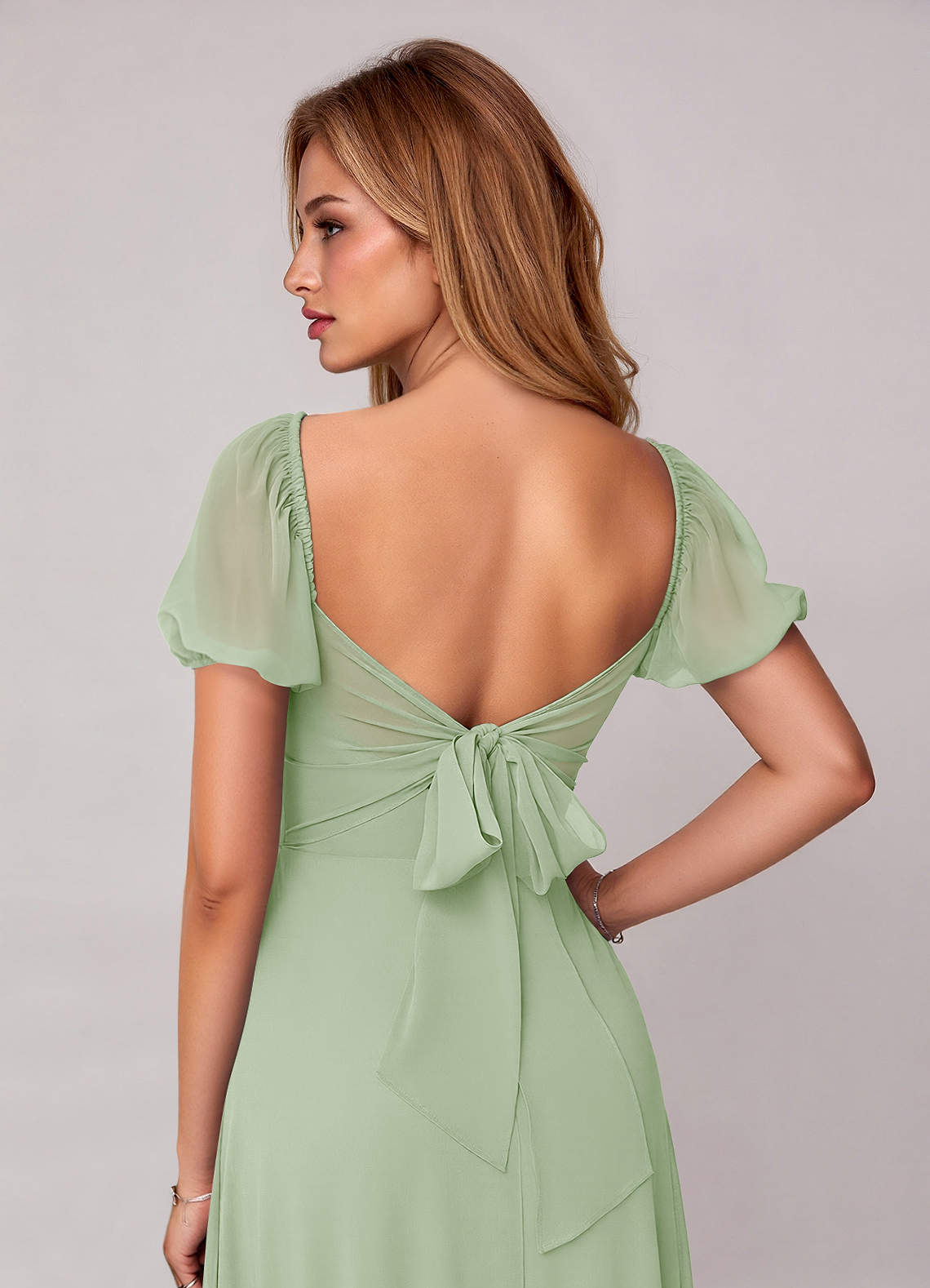 Dusty Sage A-Line with Pockets Chiffon Dress