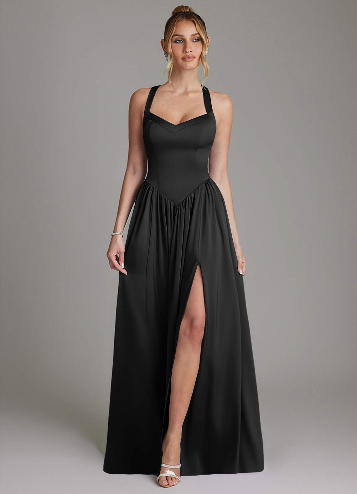 Black A-Line Corset Stretch Satin Dress